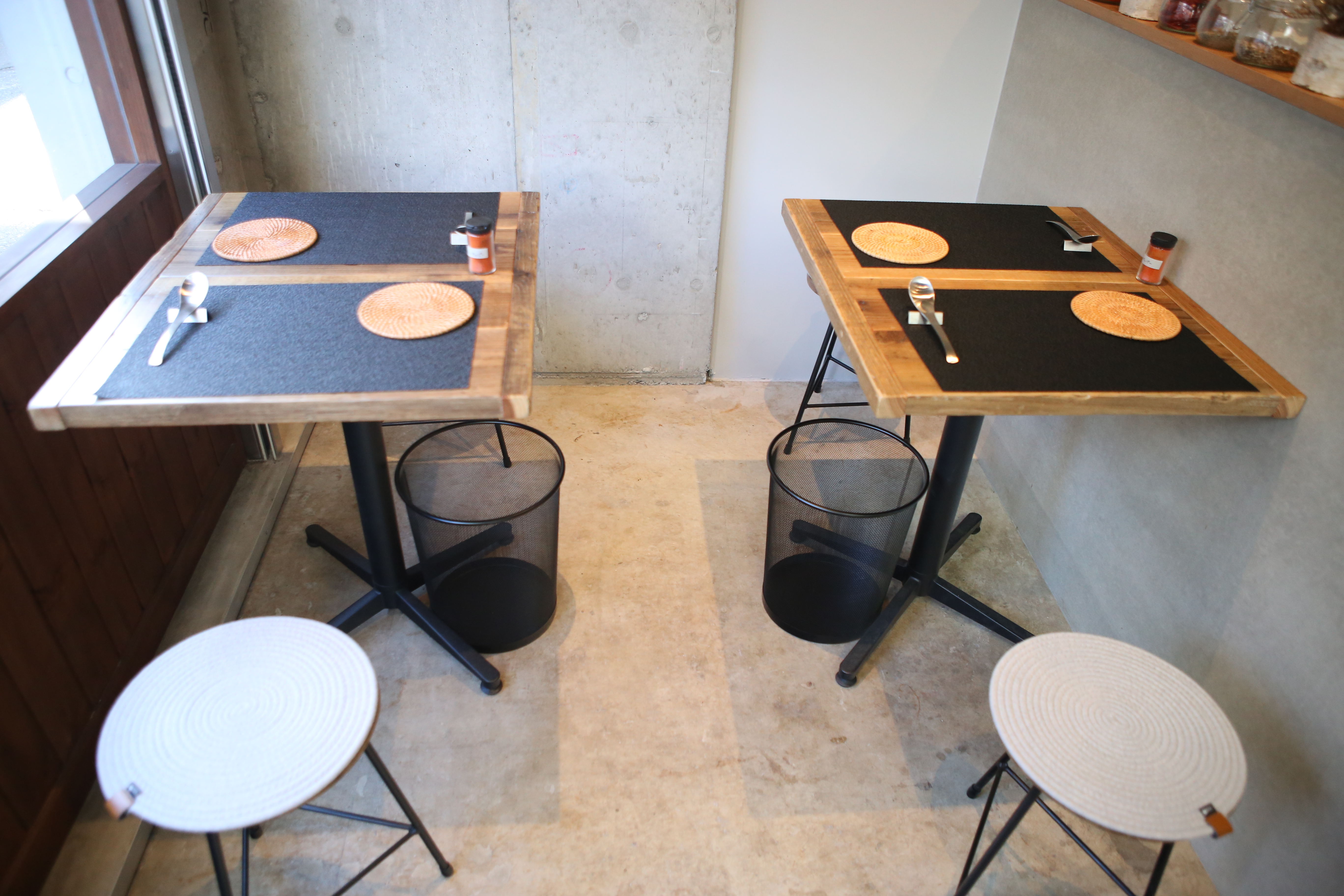 内装はコンクリート打ちっぱなしや天然素材のテーブルなどがあり、居心地の良い空間になっております。